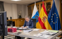 COVID-19.- Ángel Víctor Torres participa en la videoconferencia con el presidente Pedro Sánchez y el resto de responsables autonómicos para tratar la evolución del coronavirus (15 fotos).