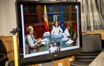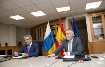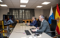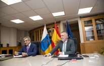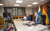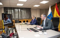 COVID-19.- El presidente de Canarias, Ángel Víctor Torres, junto al vicepresidente y consejero de Hacienda, Presupuestos y Asuntos Europeos, Román Rodríguez, mantiene una reunión telemática con la ministra de Hacienda, María Jesús Montero (12 fotos).