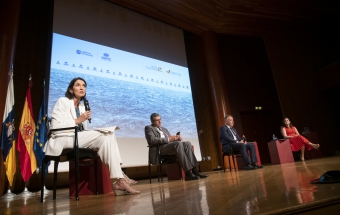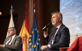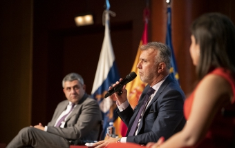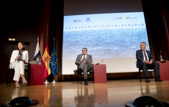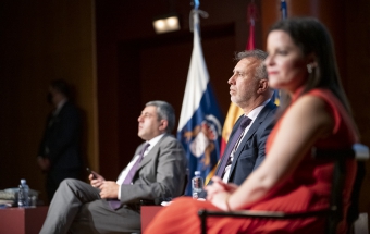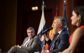 Turismo.- Ángel Víctor Torres, Yaiza Castilla, Zurab Pololikashvili y Reyes Maroto ofrecen una rueda de prensa tras reunirse con el sector turístico (26 fotos).