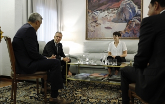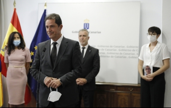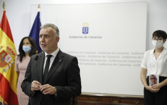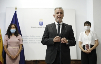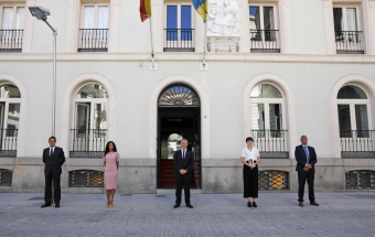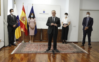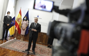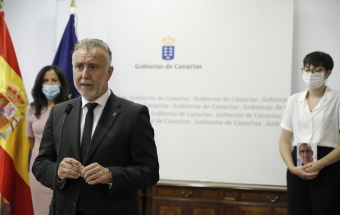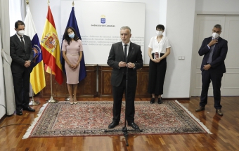 COVID-19.- Ángel Víctor Torres mantiene un encuentro con las personas que integran la delegación canaria que asiste al homenaje de Estado a las víctimas del coronavirus (24 fotos).