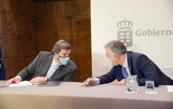 Economía.- Ángel Víctor Torres y el ministro José Luis Escrivá mantienen un encuentro con organizaciones sindicales y empresariales (16 fotos).
