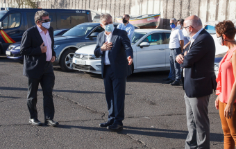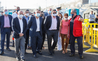 Inmigración.- El ministro de Migraciones, José Luis Escrivá, y el presidente de Canarias, Ángel Víctor Torres, visitan el muelle de Arguineguín (19 fotos).