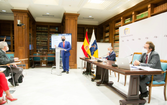Presupuestos.- Román Rodríguez entrega el proyecto de Ley de Presupuestos Generales de la Comunidad Autónoma de Canarias para 2021 al presidente del Parlamento, Gustavo Matos (21 fotos).