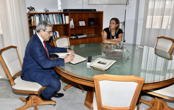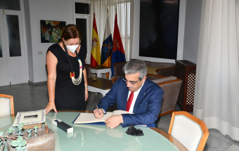 Lanzarote.- Román Rodríguez ser reúne con la alcaldesa de Arrecife, Astrid Pérez (6 fotos).