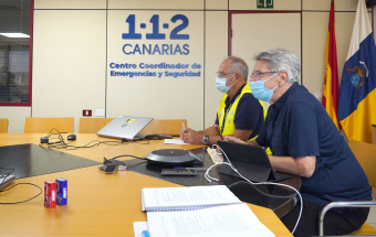 La Palma.- Julio Pérez preside la reunión del Comité Director de PEVOLCA desde la sala del 1-1-2 (6 fotos).