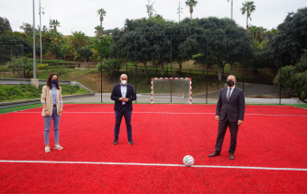 Las Palmas GC.- Hidalgo y Romero supervisan las actuaciones realizadas en el área deportiva del Parque Juan Pablo II (12 fotos).