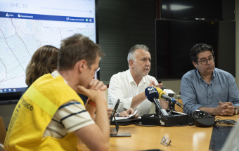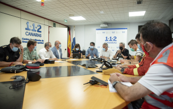 Incendio Realejos.- Ángel Víctor Torres preside la reunión técnica vespertina sobre la extinción del incendio forestal en el norte de Tenerife (5 fotos).