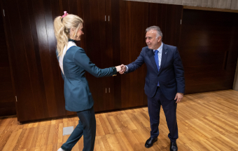 Carnaval.- Ángel Víctor Torres recibe a la reina del Carnaval del Hogar Canario Venezolano de Caracas (5 fotos).