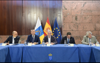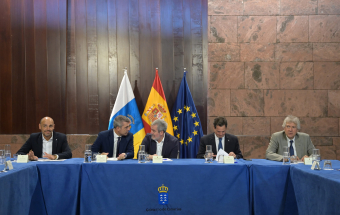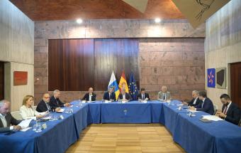 Política.- Clavijo reúne a los portavoces parlamentarios para presentarles el Decreto canario (7 fotos).