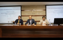 El presidente de la Autoridad Portuaria de Las Palmas, Juan José Cardona, junto con el gerente de la Fundación Puertos de Las Palmas, Sergio Galván y el director general de MBA Business School, Nacho Zabaleta, han inaugurado esta mañana el I Foro Internacional en Logística organizado por la MBA Bussinnes School.