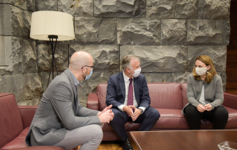 El presidente del Gobierno de Canarias, Ángel Víctor Torres, acompañado por la consejera de Derechos Sociales, Igualdad, Diversidad y Juventud del Gobierno de Canarias, Noemí Santana, se reunió hoy en la sede de Presidencia de Santa Cruz de Tenerife con el Secretario de Estado de Derechos Sociales, Nacho Álvarez.