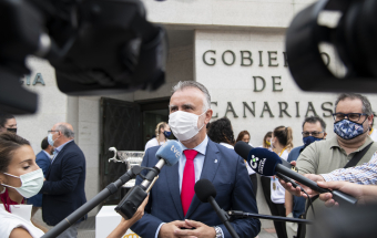El presidente de Canarias, Ángel Víctor Torres, recibió hoy a las jugadoras y al cuerpo técnico del Club Voleibol CCO 7 Palmas tras haberse proclamado campeonas de la Liga Iberdrola.