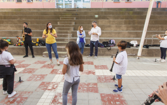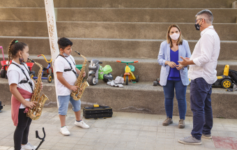La consejera de Asuntos Sociales del Gobierno de Canarias, Noemí Santana, visitó esta tarde el proyecto de Barrios Orquestados en el que participan medio centenar de menores de Telde.