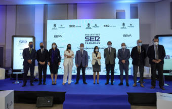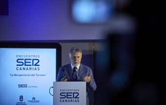 El presidente de Canarias, Ángel Víctor Torres, participó esta tarde en Madrid en el Encuentro SER Canarias 'La Recuperación del Turismo', junto al presidente de CEOE, Antonio Garamendi.