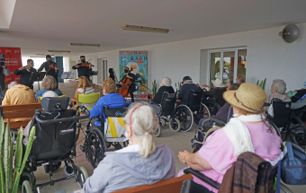 Dentro del proyecto social ‘La música te acompaña’ del International Bach Festival Canarias tuvo lugar hoy un concierto al aire libre dirigido a los usuarios de la Residencia de Mayores de Taliarte, adscrito al Instituto de Atención Social y Sociosanitaria del Cabildo de Gran Canaria. Asistieron al evento la consejera de Política Social y Accesibilidad del Cabildo de Gran Canaria, Isabel Mena, y la coordinadora del IBF Social, Charo Cardenal.