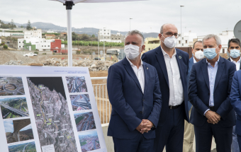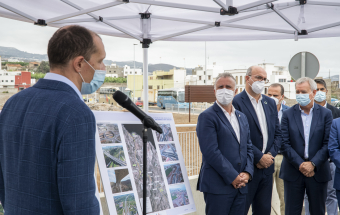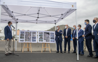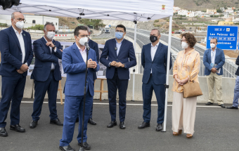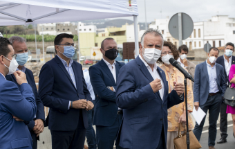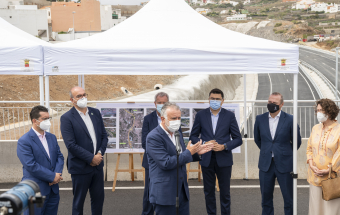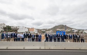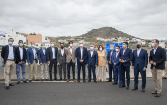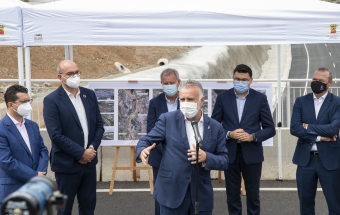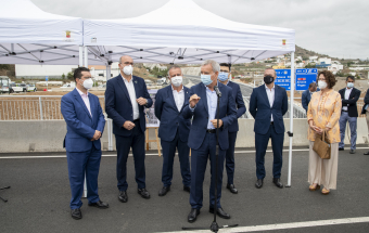 El presidente de Canarias, Ángel Víctor Torres, el delegado del Gobierno en Canarias, Anselmo Pestana, y el consejero de Obras Públicas, Transportes y Vivienda del Gobierno de Canarias, Sebastián Franquis, han supervisado hoy el acto de puesta en servicio del último tramo de la Fase IV de la Circunvalación entre Arucas y la costa cercana a Bañaderos, un trazado con dos enlaces, pasos elevados, pasarelas y una pérgola (pequeño puente) de hormigón que ha supuesto una inversión de 46,5 millones de euros que ha abonado el Gobierno regional con cargo al Convenio de Carreteras.