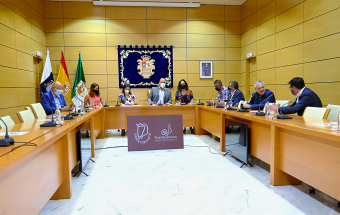 Castilla fue recibida hoy por el presidente del Cabildo majorero, Sergio Lloret, quien estuvo acompañado por las consejeras de Hacienda, Lola García y de Turismo, Jessica de León y por el consejero de Comercio, Domingo Pérez.