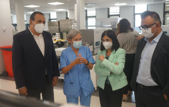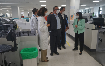 En su visita al HUGCDN, la ministra se reunió con el equipo directivo del centro hospitalario y conoció de primera mano alguno de sus proyectos más punteros. Es el caso de la terapia CAR-T para el tratamiento de linfomas y leucemia aguda linfoblástica del adulto.