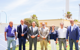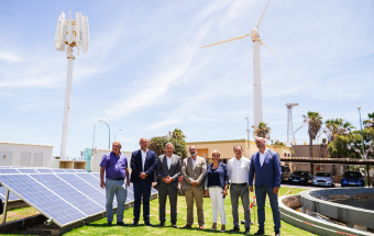 Durante su visita, los representantes de los municipios del sureste de Tenerife conocieron la instalación fotovoltaica, la desaladora y la depuradora que gestiona la Mancomunidad del Sureste de Gran Canaria, así como el aerogenerador con el que cuenta en las propias instalaciones.