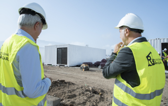 La visita se ha desarrollado en la parcela ubicada en el camino de Los Choriceros, cedida por el Ayuntamiento de Los Llanos de Aridane. El edil de Urbanismo del municipio, Manuel Perera, también acudió a un recorrido que permitió a las autoridades supervisar la conclusión de los trabajos de urbanización. En esta parcela ya se encuentran instaladas un total de 20 viviendas modulares de tipo contenedor pertenecientes al lote de 85 viviendas que cuentan con un plazo de ejecución de tres meses y medio. Este modelo, elegido a instancias del propio ayuntamiento, es trasladado desde Galicia y su instalación solo requiere de una semana de trabajos.