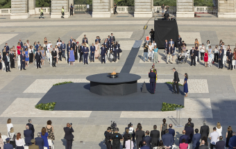 El presidente de Canarias, Ángel Víctor Torres, acudió esta mañana (viernes 15 de julio) al homenaje que se celebró en el Palacio Real de Madrid a las víctimas de la pandemia de la covid-19, con presencia del rey Felipe VI y el presidente del Gobierno de España, Pedro Sánchez, así como ministros, presidentes del resto de comunidades autónomas y otros representantes de las administraciones públicas y la sociedad civil. En declaraciones a los medios de comunicación, el jefe del Ejecutivo canario remarcó el esfuerzo hecho por Canarias y España para minimizar los efectos de la pandemia con una sanidad pública que ha demostrado su robustez y recordó que las Islas han mantenido hasta ahora los 7.000 sanitarios contratados en busca de ese refuerzo imprescindible.
