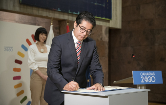 El Pacto por la Ciencia estará disponible en la página web de la Agencia Canaria de Investigación, Innovación y Sociedad de la Información, para que pueda ser consultado y, en su caso, firmarlo quien lo desee. Hoy fue suscrito por Ángel Víctor Torres Pérez, presidente de Canarias; Nira Fierro Díaz (PSOE); José Miguel Barragán Cabrera (CC), Poli Suárez Nuez (PP); Luis Alberto Campos Jiménez (NC); María del Río Sánchez (Sí Podemos); Jesús Ramón Ramos Chinea (ASG); Ricardo Fernández de la Puente Armas (Cs); Ernesto Pereda de Pablo, vicerrector de Investigación y Transferencia de la Universidad de La Laguna; Lluís Serra Majem, rector de la Universidad de Las Palmas de Gran Canaria; Pedro Alfonso Martín, presidente de CEOE-Tenerife; José Cristóbal García García, vicepresidente de la Confederación Canaria de Empresarios; Manuel Navarro Ramos, secretario general UGT-Canarias, e Inocencio González Toscón, secretario general de Comisiones Obreras en Canarias. Al proyecto también se adhiere la Federación Canaria de Municipios y la Federación Canaria de Islas, con la firma de la presidenta de la Fecam, Mari Brito, y del presidente del Cabildo de Tenerife, Pedro Martín.