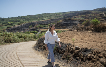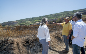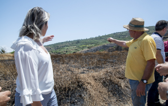 A continuación, la titular de Agricultura se desplazó hasta la zona de Lomo Hurtado, en San Juan de la Rambla, un espacio agrícola dedicado principalmente al cultivo de cereales que se vio afectado por el fuego. En el municipio de Los Realejos visitó Los Campeches, lugar con un importante valor rural y foco originario del incendio del pasado 21 de julio.