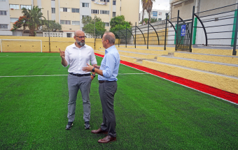El alcalde de Las Palmas de Gran Canaria, Augusto Hidalgo, y el concejal de Deportes, Aridany Romero, supervisaron hoy las obras de mejora llevadas a cabo por el Instituto Municipal de Deportes en la pista deportiva de Las Tenerías, que ha experimentado una remodelación integral contando con una inversión de 65.641 euros.