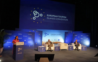 La consejera de Turismo, Industria y Comercio del Gobierno de Canarias, Yaiza Castilla, y el presidente de la Asociación para la Investigación, el Estudio y la Excelencia del Sector Turístico en las Islas Canarias, Excelcan, Santiago de Armas, inauguraron esta la I Convención de Islas Turísticas Europeas, que se celebra este jueves y el viernes en el Palacio de Congresos ExpoMeloneras.