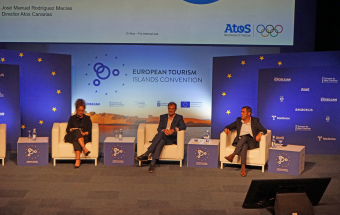 La primera jornada de la convención se ha centrado en los grandes desafíos que afronta la industria turística actualmente: la sostenibilidad, la transición digital y la gestión de los datos. La primera mesa de análisis, debatió sobre el binomio turismo-sostenibilidad y bajo el título ‘Islas verdes europeas ante el cambio climático’. Este panel estuvo moderado por José Manuel Rodríguez, director de Atos Consulting Canarias SAU, y contó con la participación de Pablo Lorenzo, gerente de Operaciones, Procesos y Desarrollo de Hoteles Lopesan; Lola Rodríguez de Acero, fundadora de Ecoway y SmartLinking; Ireni Mikelis, gerente de Proyectos de Insuleur; y José Juan Lorenzo, director gerente de Turismo de Islas Canarias.