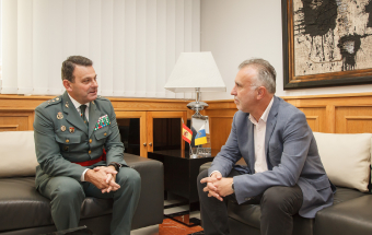 El presidente de Canarias, Ángel Víctor Torres, recibió esta mañana en Las Palmas de Gran Canaria al nuevo general de brigada jefe de la Zona de la Guardia Civil de Canarias, Juan Hernández Mosquera.