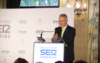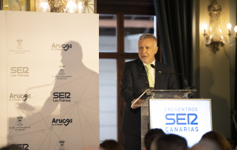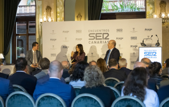 Arucas.- Ángel Víctor Torres, presenta al alcalde, Juan Jesús Facundo, antes de su intervención en Encuentros SER Canarias (total). 10:35 19-12-2022 Canarias