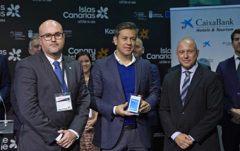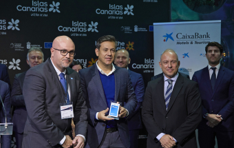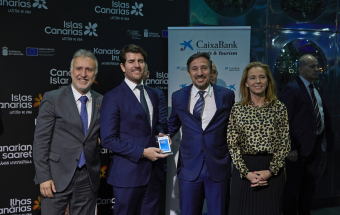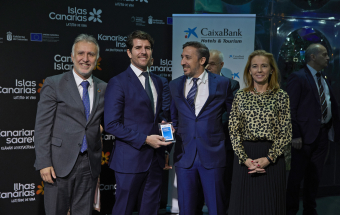 En el marco de la 43ª Feria Internacional de Turismo (Fitur) que se celebra en Madrid, CaixaBank ha celebrado este miércoles, en el stand de Canarias, el acto de entrega del “Premio de Innovación y Modernización de Empresas Turísticas en Canarias” que en su séptima edición ha distinguido a los establecimientos Mynd Adeje, Grupo Tusity, Hotel Catalina Plaza Sostenible y Arrecife Gran Hotel & Spa. La entrega de galardones ha contado con la participación de la ministra de Industria, Comercio y Turismo, Reyes Maroto; el presidente de Canarias, Ángel Víctor Torres; la consejera de Turismo, Industria y Comercio, Yaiza Castilla; el director territorial de CaixaBank en Canarias, Manuel Afonso; el director comercial de Banca de Empresas de la entidad financiera en las Islas, Andrés Guerra; así como de los presidentes de las cuatro principales patronales turísticas de las Islas, Jorge Marichal (Ashotel); José María Mañaricua (Feht); Susana Pérez (Asolan); y Antonio Hormiga (Asofuer).