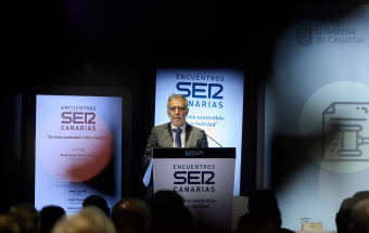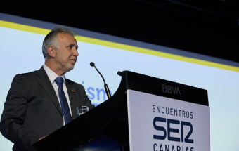 El presidente de Canarias, Ángel Víctor Torres, intervino esta tarde en los Encuentros Ser, en la sede central de BBVA en Madrid, cita centrada en el turismo sostenible y que contó con la presencia, además, de la ministra de Industria, Comercio y Turismo, Reyes Maroto, y del máximo responsable del Cabildo de Gran Canaria, Antonio Morales.