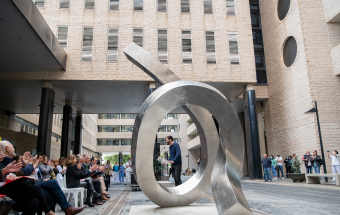El Hospital Universitario de Gran Canaria Dr. Negrín, centro adscrito a la Consejería de Sanidad del Gobierno de Canarias, ha presentado este martes, 31 de enero, la escultura ‘A pulso’, obra del artista grancanario, Daniel Pérez, donada por la Fundación Mapfre Canarias. Realizada en acero inoxidable, esta escultura, situada en la calle principal del Hospital Dr. Negrín (frente al hall de Hospitalización), surge de la necesidad de crear un monumento escultórico conmemorativo en relación a la situación provocada por la covid-19. Con esta escultura se reconoce la labor realizada por todos los profesionales del sector sanitario durante la pandemia.