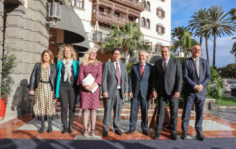 El presidente de Canarias, Ángel Víctor Torres, el consejero de Sanidad del Gobierno de Canarias, Blas Trujillo, el presidente del Tribunal Superior de Justicia de Canarias, Juan Luis Lorenzo, y la magistrada suplente de la Sala de lo Social del Tribunal Superior de Justicia de Madrid, Esther Concepción Morales, participaron esta mañana en la apertura de las ‘Jornadas de Derecho e Investigación’ que, organizadas por la Fundación Instituto de Investigación Sanitaria de Canarias (FIISC), adscrita a la Consejería de Sanidad del Gobierno de Canarias, se celebran hasta mañana sábado, 25 de febrero, en el Hotel Santa Catalina de Las Palmas de Gran Canaria.
