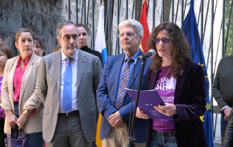 La directora del Instituto Canario de Igualdad, Kika Fumero, hizo lectura hoy del manifiesto del Gobierno de Canarias para conmemorar el Día de la Mujer. El acto, que se celebró en la sede de Presidencia de Santa Cruz de Tenerife, contó con la presencia del consejero Julio Pérez. entre otros.
