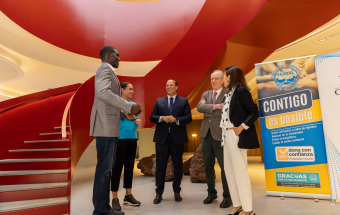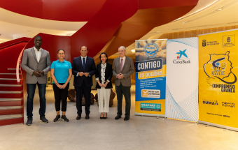 Esta acción solidaria ha sido presentada este lunes en la oficina all in one Gran Canaria de la entidad financiera en Las Palmas de Gran Canaria. Estuvieron presentes en el acto Sitapha Savané, presidente del Club Baloncesto Gran Canaria; el presidente del Banco de Alimentos de Las Palmas, Pedro Llorca; el director territorial de CaixaBank en Canarias, Manuel Afonso; y la responsable de Acción Social de la entidad en las Islas, Olga del Pino.