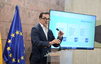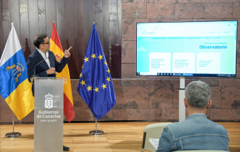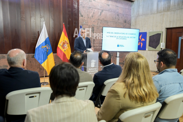 El vicepresidente del Gobierno de Canarias y consejero de Economía, Industria, Comercio y Autónomos, Manuel Domínguez, presentó hoy el nuevo portal web del Observatorio del Comercio de Canarias, un espacio de referencia donde se centralizarán estudios y estadísticas sobre la evolución del sector, integrando indicadores clave como empleo, consumo, comercio exterior o hábitos de compra. Una de las funcionalidades de esta nueva herramienta es la de elaborar estudios específicos, cuyo primer diagnóstico del sector comercial en Canarias fue presentado por el director general Comercio y Consumo, David Mille.
