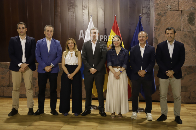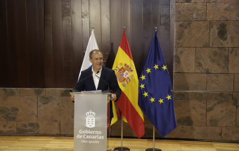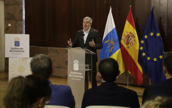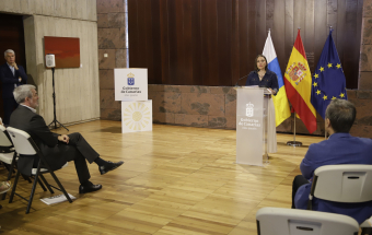 El presidente de Canarias, Fernando Clavijo, participó hoy en la rueda de prensa en la que Tenerife y La Palma presentan una candidatura compartida para albergar el futuro Centro Nacional de Vulcanología. En esta rueda de prensa, estuvieron presentes la presidenta del Cabildo de Tenerife, Rosa Dávila; el presidente del Cabildo de La Palma, Sergio Rodríguez: y la consejera de Universidades, Ciencia e Innovación y Cultura, Migdalia Machín.