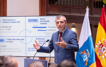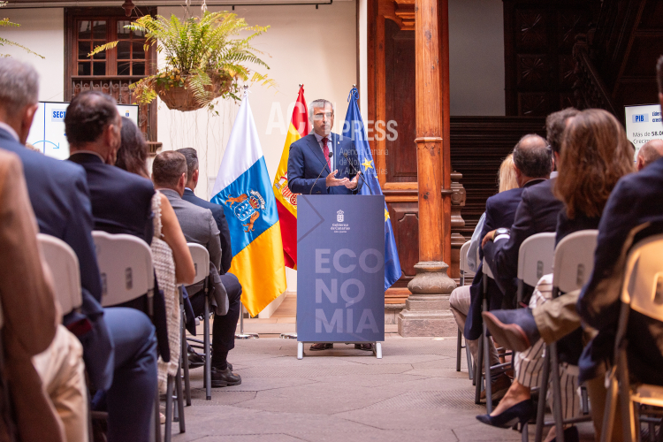 El vicepresidente del Gobierno y consejero de Economía, Industria, Comercio y Autónomos, Manuel Domínguez, presentó hoy los datos macroeconómicos de Canarias ante los principales agentes económicos y sociales de Canarias en el Palacio de Carta, en Santa Cruz de Tenerife.