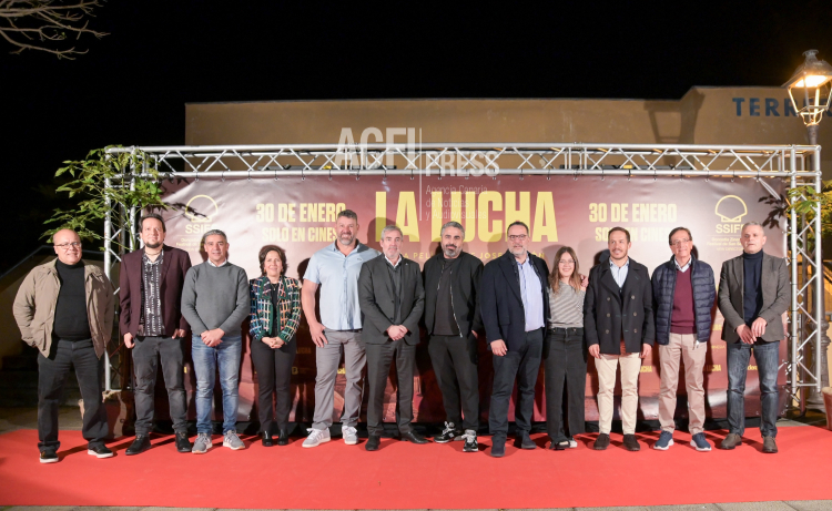 El presidente de Canarias, Fernando Clavijo, asistió hoy al preestreno de la película La Lucha en el terrero insular de Tegueste, en el que estuvieron presentes su director Jose Alayón, y los actores Tomasín Padrón, Yazmina Estupiñán, Marcos Galván, Mamadou Cámara, entre otros miembros del equipo.