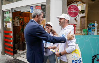 El vicepresidente del Gobierno de Canarias y consejero de Economía, Industria, Comercio y Autónomos, Manuel Domínguez, informó esta tarde, realizando un recorrido por la zona comercial de Triana en Las Palmas de Gran Canaria, de las ventajas de adherirse a la campaña de Bonos Consumo Archipiélago.