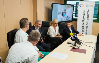 Al presidente le acompañaron la Consejera de Sanidad, Esther Monzón; el presidente del Cabildo Insular de Lanzarote, Oswaldo Betancort, el gerente de los servicios sanitarios de Lanzarote, Pablo Eguía; y el jefe de Cirugía del Hospital, Juan de Diego.