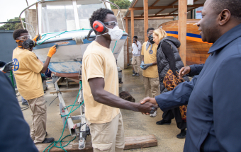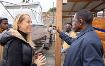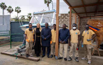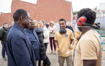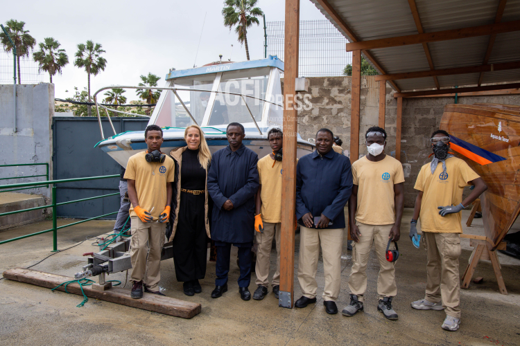 Para conocer el avance del proyecto, este miércoles visitaron el centro la directora general de Formación Profesional y Enseñanzas de Régimen Especial del Gobierno de Canarias, Carolina León, junto con el embajador de la República de Gambia en España, Noah Turay; la gerente de la Fundación Puertos de Las Palmas, Betsabé Morales; y la presidenta de Corazón Solidario, Sonja Arup.