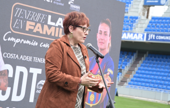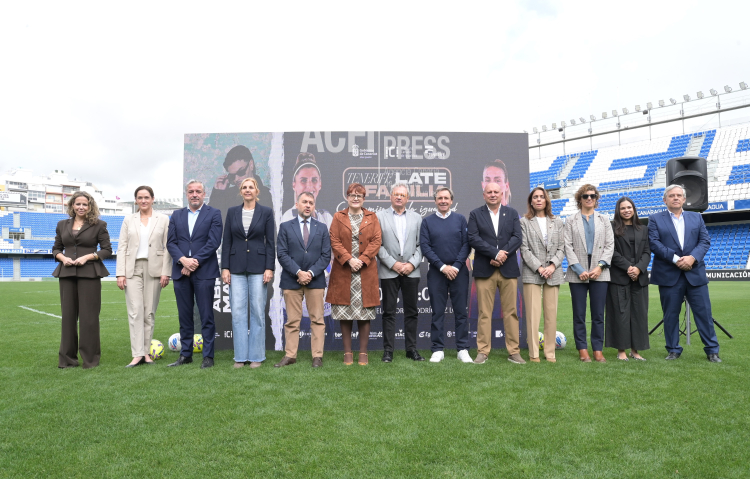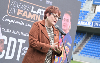 La consejera de Bienestar Social, Igualdad, Juventud, Infancia y Familias del Gobierno de Canarias, Candelaria Delgado, y los presidentes del Club Deportivo Tenerife Femenino, Sergio Batista, y el presidente del Club Deportivo Tenerife, Felipe Miñambres, presentaron hoy la fiesta del fútbol femenino que tendrá lugar con motivo del encuentro ante el FC Barcelona que se disputa el 10 de mayo. Durante el acto se dieron a conocer los detalles de esta iniciativa y en el mismo también intervinieron el CEO de la Liga F, Pablo Vilches; la consejera de Deportes del Cabildo de Tenerife, Yolanda Moliné; la concejala de Igualdad y Diversidad Afectiva Sexual de Santa Cruz de Tenerife, Gladys de León; y el concejal de Deportes del Ayuntamiento de Adeje, Adolfo Alonso.