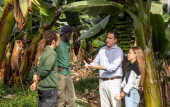 El viceconsejero de Bienestar Social, Francisco Candil, se trasladó este lunes hasta el municipio de Guía para conocer las labores que un total de 24 jóvenes extutelados realizan en las fincas de plataneras y de empaquetado dentro de la empresa Conagrican, del grupo Félix Santiago Melián, cuya contratación se ha materializado en el marco del programa Urdimbre. Retos para el empleo, impulsado por la consejería de Bienestar Social del Ejecutivo canario.
