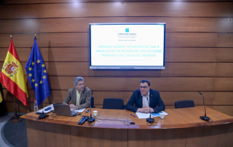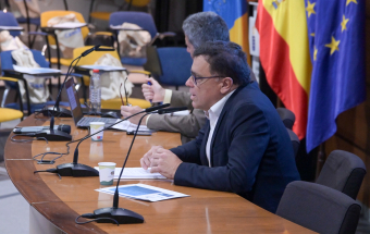 El consejero de Política Territorial, Cohesión Territorial y Aguas del Gobierno de Canarias, Manuel Miranda, inauguró hoy la jornada debate sobre la situación actual y propuestas de mejora de los sistemas tarifarios en Canarias. Durante la presentación también intervino el jefe de servicio de aguas de la Dirección General de Aguas del Gobierno de Canarias, Felipe Roque.