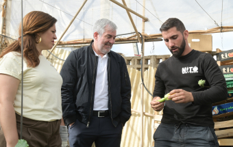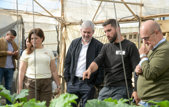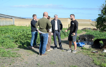 El presidente de Canarias, Fernando Clavijo, visitó hoy una finca agrícola donde coincidirá con alumnos del CEIP Fernando III El Santo asistieron a un taller sobre el campo canario.