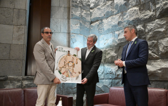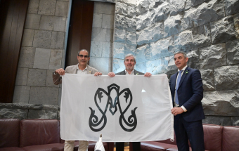 El presidente de Canarias, Fernando Clavijo, acompañado del consejero de Agricultura, Ganadería, Pesca y Soberanía Alimentaria del Gobierno de Canarias, Narvay Quintero, recibió este martes, de manos del alcalde de Valverde, Carlos Brito, la bandera bendecida de la LXXI Bajada de la Virgen de los Reyes en la sede de la Presidencia en Santa Cruz de Tenerife.